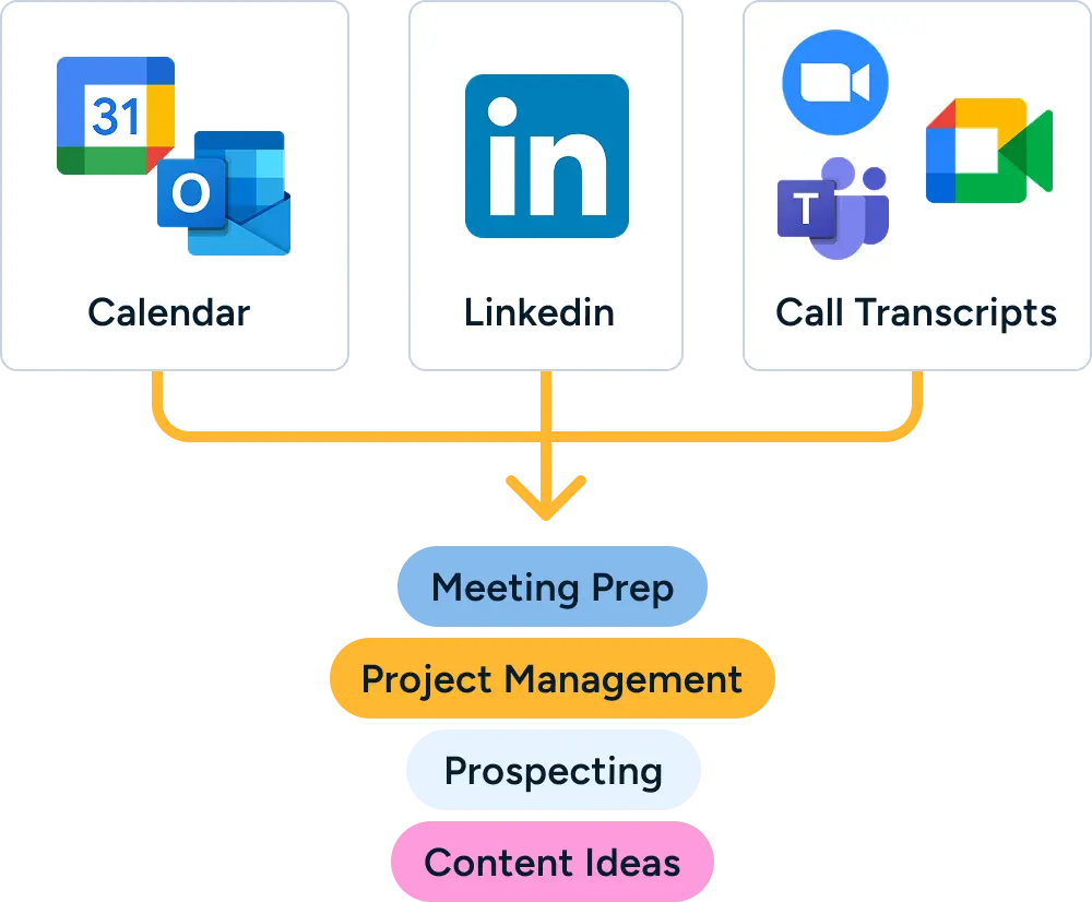 By connecting her Google Calendar, LinkedIn network, and contacts, Gia automatically mapped Helen’s relationships, analyzed her interactions, and surfaced actionable signals — like when a good-fit contact engaged with her content or a competitor’s post.